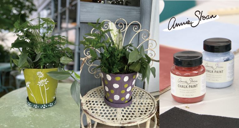 植木鉢にアニースローンのチョークペイントで色付けし、世界に1つだけの素敵な寄せ植えをつくりませんか?