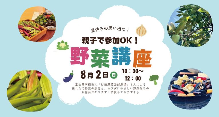 富山県南砺市の「杉苗屋源四郎農場」さんによる採れたて野菜の販売と、カラダにやさしい野菜づくりお話会を開催!